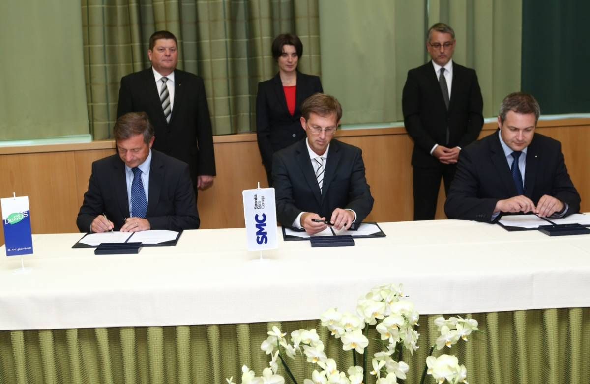 Predsedujoči SMC, DeSUS in SD Miro Cerar, Karl Erjavec in Dejan Židan so tudi dokončno podpisali koalicijski sporazum o sodelovanju v vladi za mandatno obdobje 2014-2018. Mandatar Miro Cerar bo listo ministrskih kandidatov v državni zbor vložil v torek.