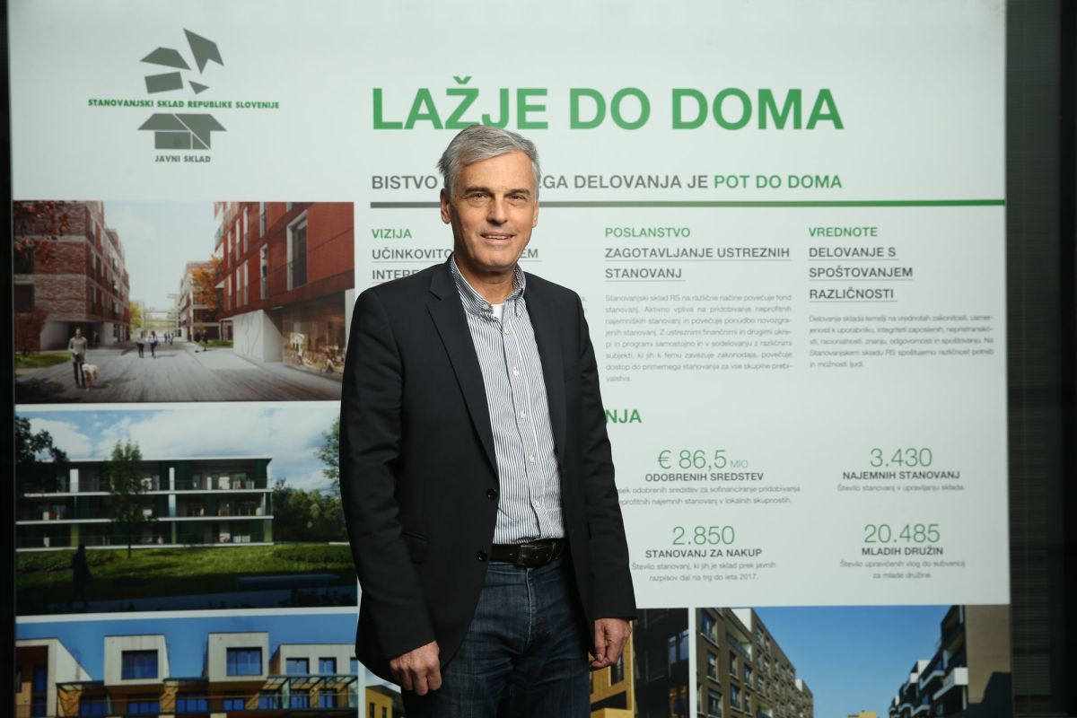 Resolucija o nacionalnem stanovanjskem programu, sprejeta leta 2015, si je kot glavni cilj zastavila preobrat od lastniških v najemna stanovanja. Načrtovano je bilo, da se bo v desetih letih med 2015 in 2025 zgrajenih 10.000 novih javnih najemnih stanovanj. Sama resolucija ne zagotavlja celotnih finančnih virov. Imamo določene lastne vire, pridobivali smo tudi kredite, in tako smo danes prišli tako daleč, da je 2500 stanovanj v gradnji. Približno polovica jih je v naših lastnih projektih, pri približno 750 stanovanjih financiramo projekte občin in mestnih skladov. Gre tako za občine, kot je Sveta Ana z dvema stanovanjema, do Ljubljane, ki jih ima bistveno več. Potem imamo še nakupe na trgu, kjer kupujemo gotova stanovanja. Za 366 jih imamo podpisane pogodbe, poleg tega še za dve zemljišči v Izoli, skupaj je to skoraj 500 stanovanj. Poleg tega imamo do leta 2025 v pripravi še gradnjo približno 1500 stanovanj.