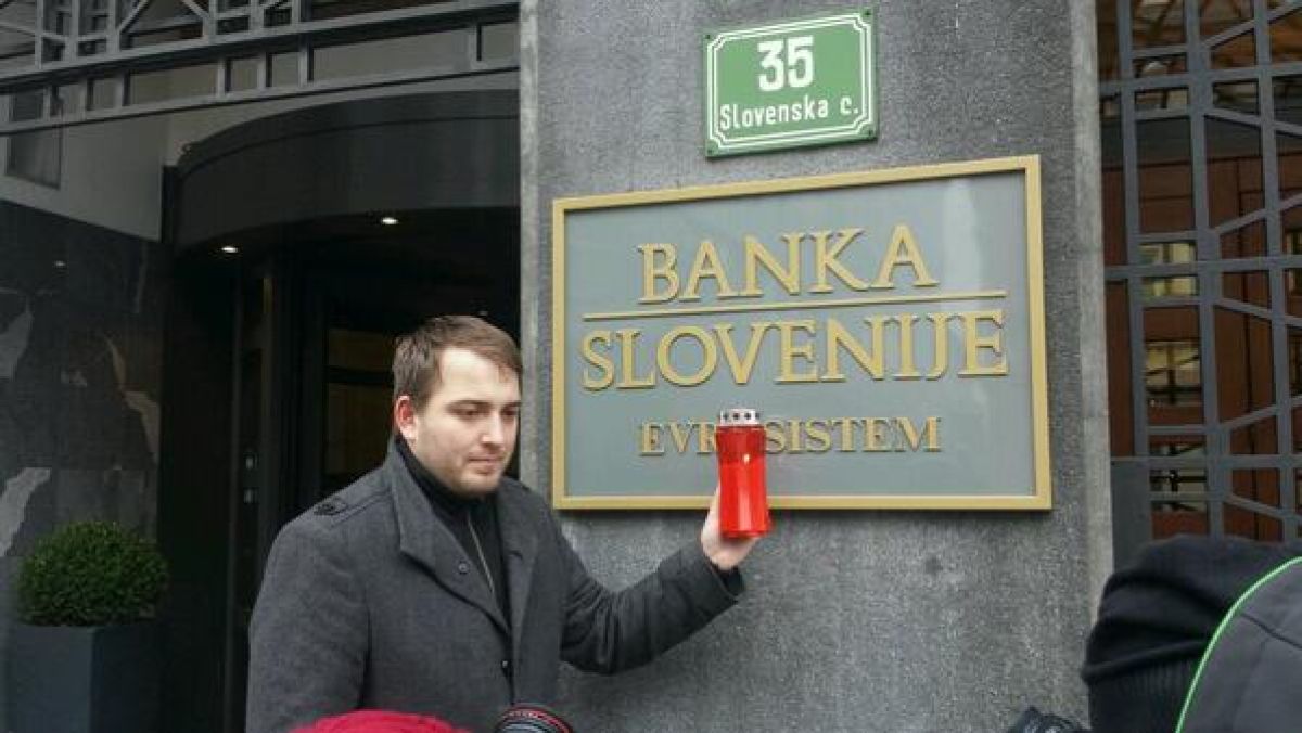 Najmlajši poslanec Državnega zbora Slovenije Andrej Čuš je danes s prižiganjem sveč pred Banko Slovenije opozoril na nedelovanje Banke Slovenije v kritičnih trenutkih še vedno trajajoče krize.