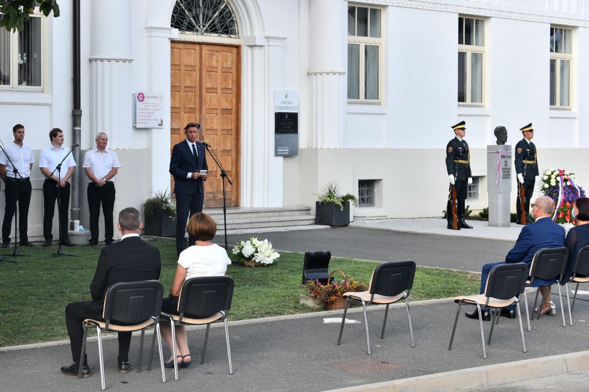 Slovesnost pred praznikom je bila popoldne tudi v Črenšovcih, kjer je zbrane nagovoril predsednik republike Borut Pahor in položil venec k spomeniku Jožefa Klekla starejšega.