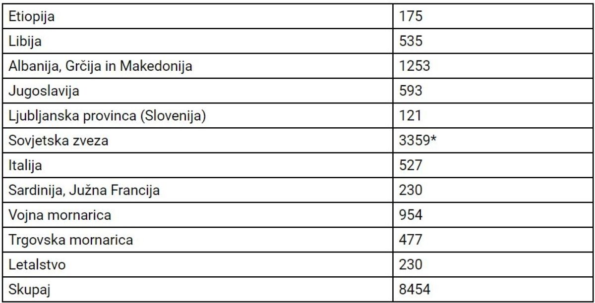 * Od alpincev divizije Julia, ki je bila poslana na vzhodno bojišče med reko Volgo, Donom in ob Donecu, se jih je od 48.000 vrnilo le 11.000.