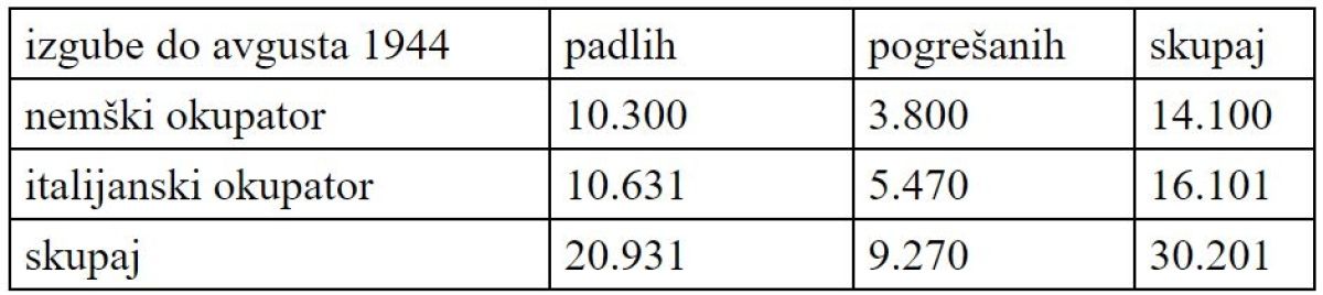 O okupatorskih enotah in njihovih izgubah v bojih z jugoslovanskimi partizani se da povedati kaj bolj natančnega.