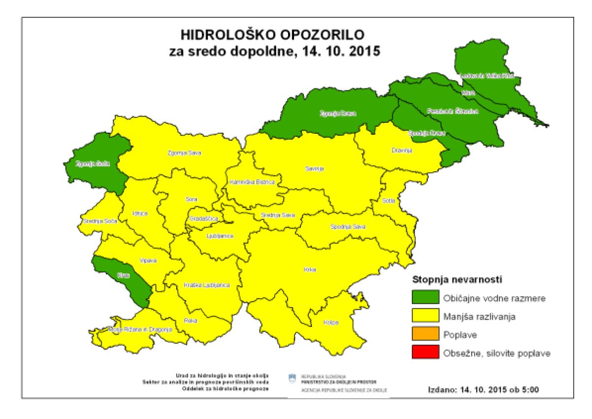 Ponoči in danes dopoldne lahko pričakujemo močnejše naraščanje manjših rek in hudournikov, še posebej v jugozahodni in osrednji Sloveniji. Na teh območjih lahko pride do razlivanj na območjih pogostih poplav. Popoldne in v noči na četrtek pa bodo reke po državi ponovno močneje porasle, zlasti v južni in osrednji Sloveniji, opozarjajo na Arsu.