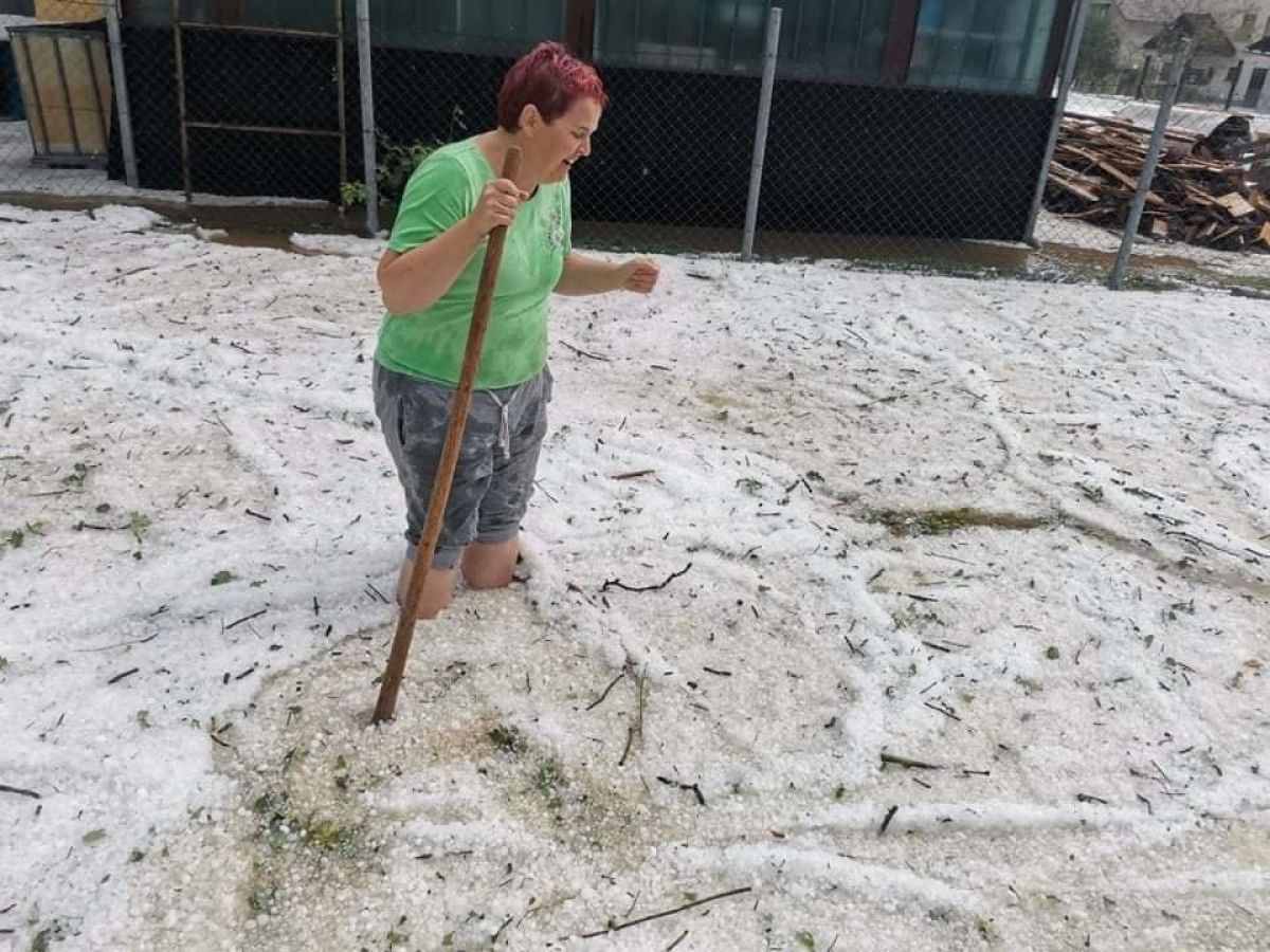 Dolenjce zasula tako močna toča, da so jo morali plužiti (FOTO)