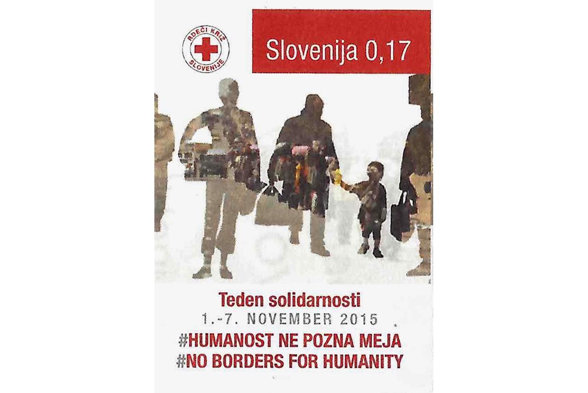 Na znamkah je fotografija beguncev in napis »Humanost ne pozna meja« v slovenskem in angleškem jeziku. »Nakup doplačilnih znamk in vozovnic je obvezen, vrednost znamke in doplačilne vozovnice pa na podlagi 28. člena Zakona o RKS in sklepa Vlade RS za leto 2015 znaša 0,17 evra,« piše na spletni strani Rdečega križa Slovenije. »Sredstva, zbrana s pomočjo doplačilnih znamk in vozovnic in vozovnic v Tednu solidarnosti, se stekajo v Sklad solidarnosti Rdečega križa Slovenije in so namenjena pomoči ljudem ob naravnih in drugih nesrečah večjega obsega oz. takojšnji pomoči posameznikom in družinam ob manjših nesrečah (požari, poplave, plazovi, ...).«