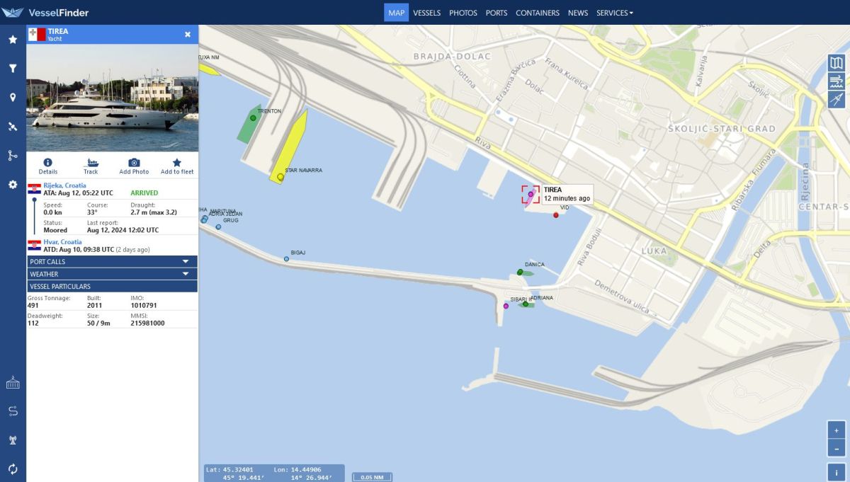 Še v petek je bila jahta, ki pluje pod malteško zastavo, opažena pred Bolom na Braču, v soboto je bila zasidrana pred Hvarom, včeraj pa je bila že v marini na Reki.