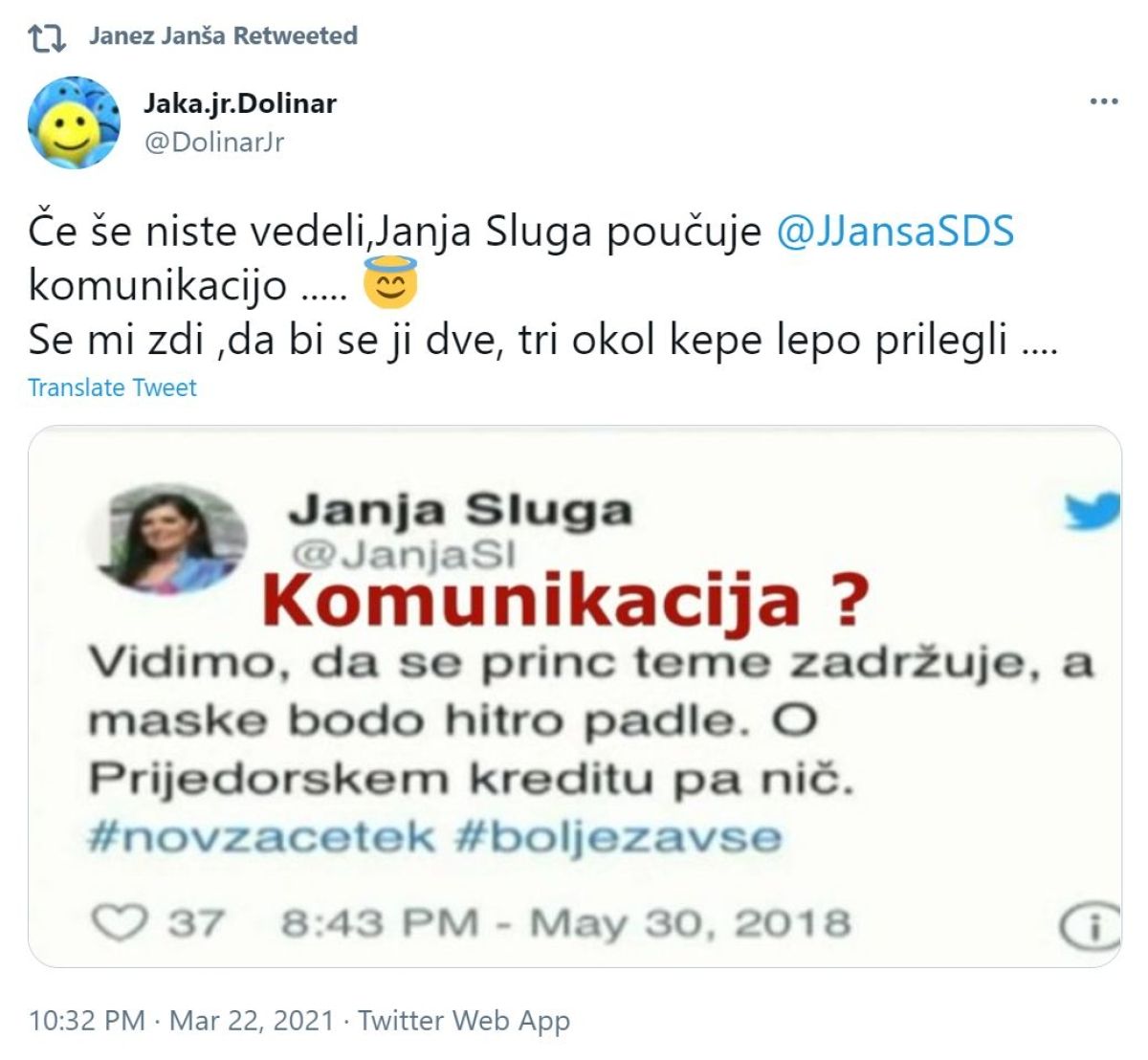 "Dve, tri okol kepe" za Janjo Sluga: Janša se s tem strinja