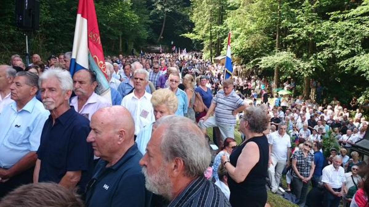 Okoli tisoč ljudi, večinoma Slovencev in Hrvatov, se je pri rovu Sv. Barbare v Hudi Jami udeležilo spominske slovesnosti z mašo ob 70-letnici povojnih pobojev, ki predstavljajo eno največjih tragedij slovenskega naroda. Mašo je ob pomoči hrvaškega škofa Mileta Bogoviča in priorja Edmunda Wagenhoferja vodili celjski škof Stanislav Lipovšek.