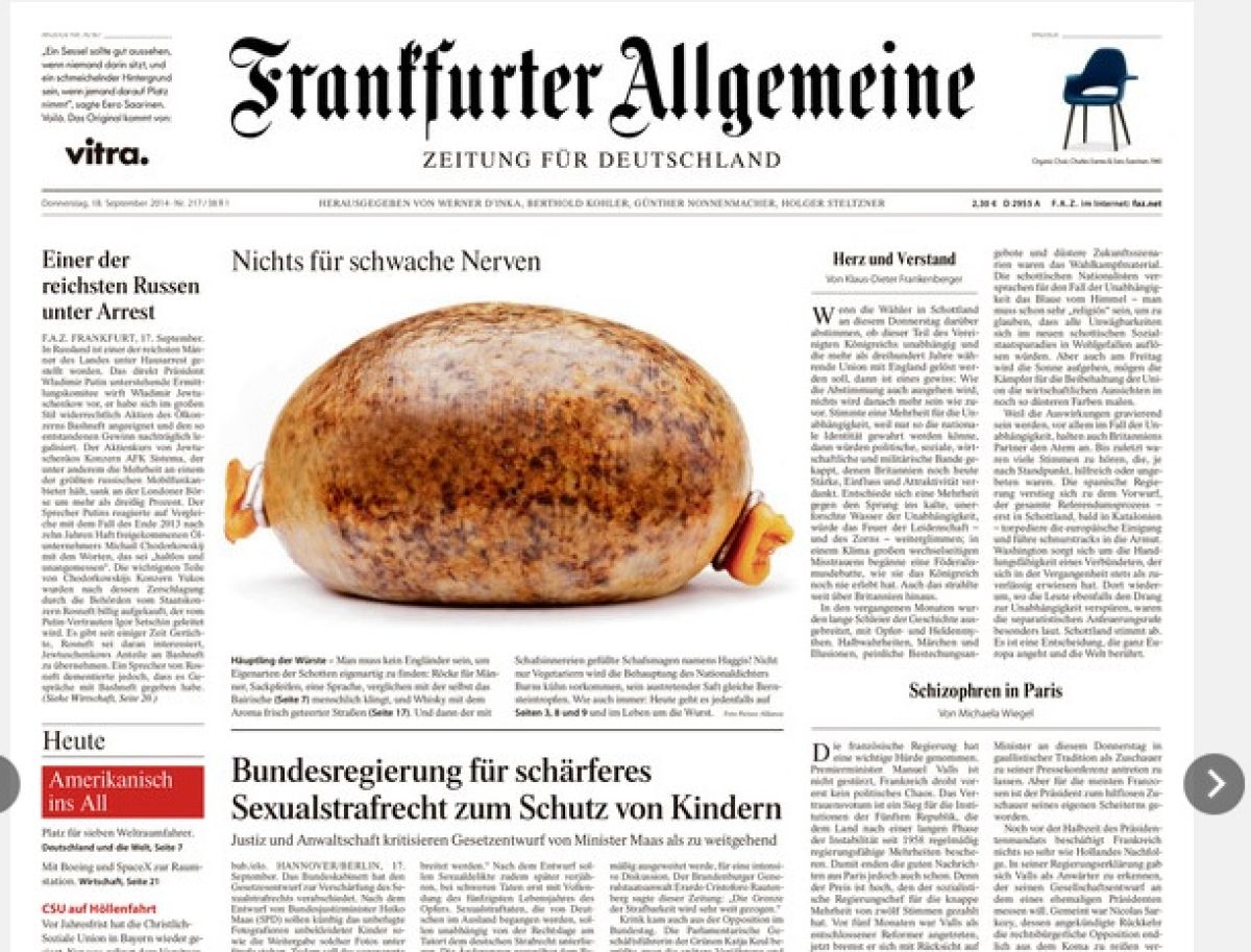 Nemški dnevnik Franfurter Allgemeine Zeitung (FAZ) je danes objavil daljši prispevek o prvaku SDS Janezu Janši, ki je od 20. junija v zaporu. Pod članek se je podpisal novinar Karl-Peter Schwarz, ki je očitno obiskal Janšo oz. se z njim pogovarjal. Kot ocenjuje, cilj procesa Patria ni iskanje resnice, ampak politično uničenje Janše.