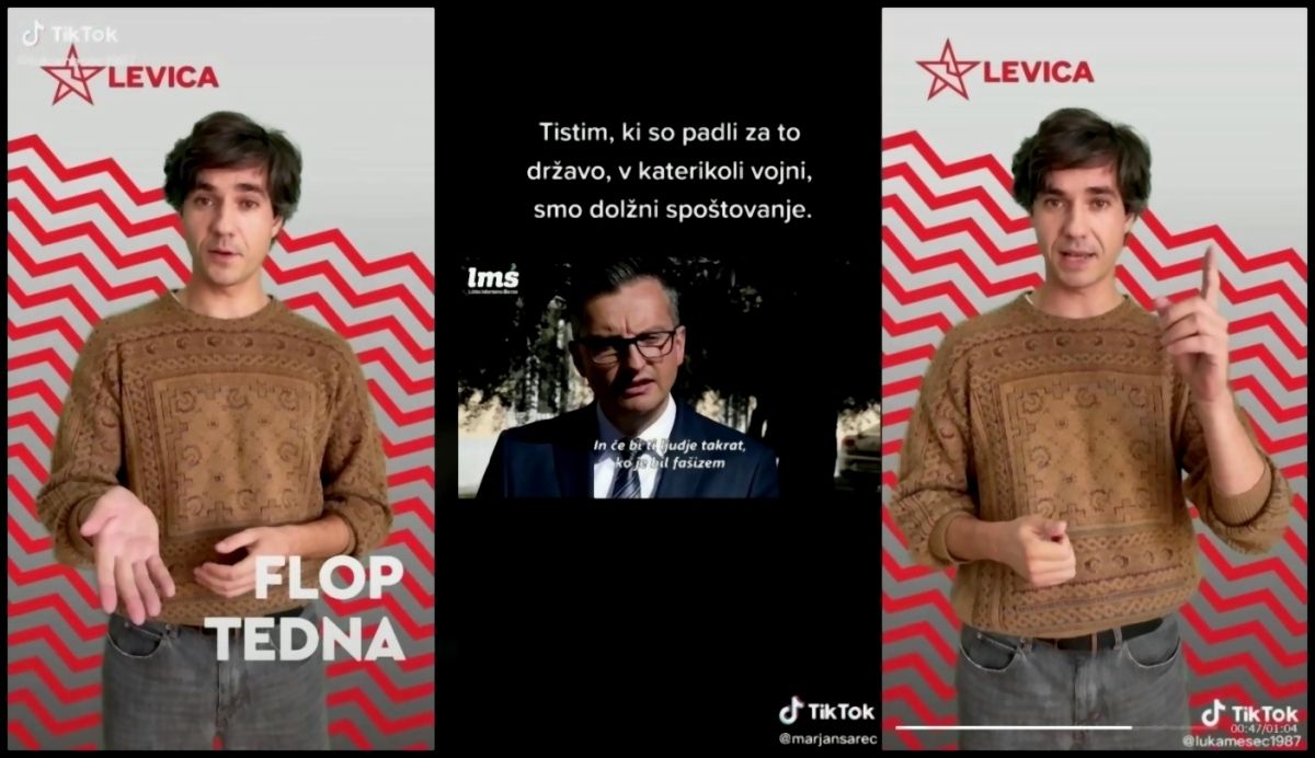 Levica se je vsega skupaj očitno lotila z nekoliko več premisleka in svojo demagogijo nad mladimi uporabniki zavila v nekoliko bolj moderno embalažo. Uporabnikom, ki se navdušujejo predvsem nad dinamičnimi plesnimi gibi, je postregla s povsem statičnim Lukom Mescem, za nekaj dinamike pa poskrbela s kričečim ozadjem, ki celo brez besed preglasi mirnega Mesca. Mesec, ki ima na Tik Toku 357 sledilcev, bo očitno mlade Tiktokovce s svojo nekoliko zaspano, nič kaj tiktokovsko pojavo, nagovarjal vsak teden in jim postregel s topom, flopom in fiksom meseca, povedal pa jim bo tudi, kaj dela Levica. Seveda s primerno izbranimi besedami, kot so »frka« in »amazing teden«.