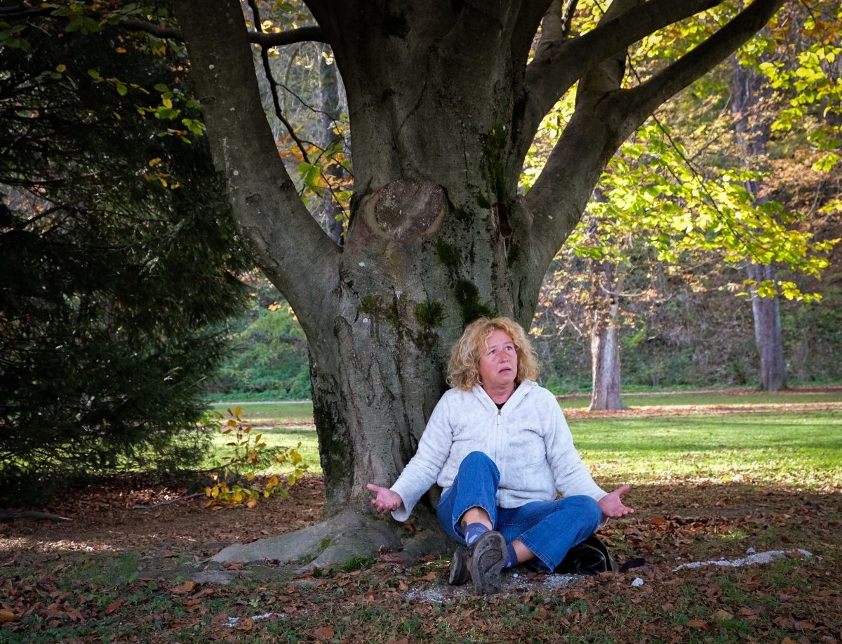 Občanka Celja Irena Ašič, znana po tem, da se zavzema za ohranitev in zaščito dreves, je včeraj v celjskem mestnem parku sedela ob okoli sto let stari bukvi.