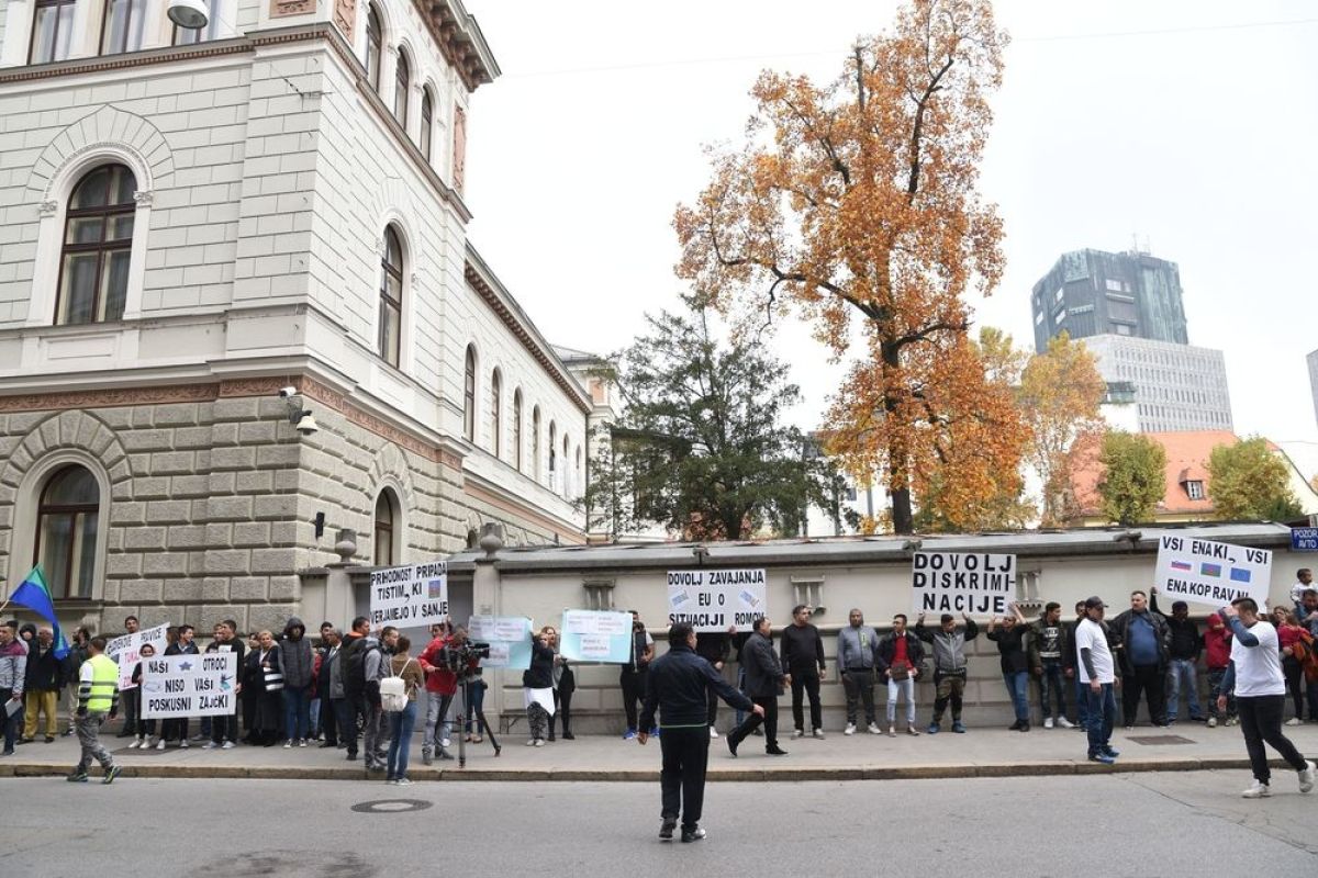 FOTO: Protest Romov v centru Ljubljane: Naši otroci niso vaši poskusni zajčki