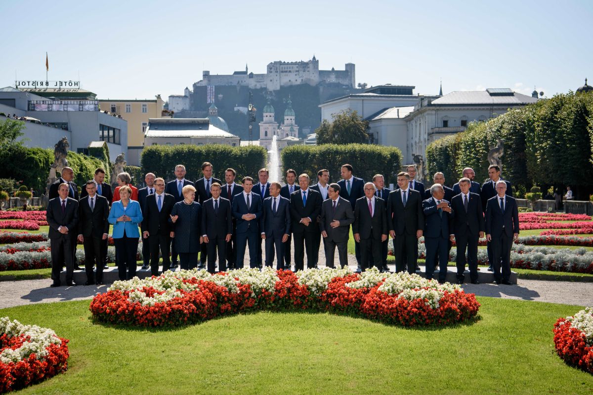 Premier Marjan Šarec se je v Salzburgu udeležil neformalnega zasedanja voditeljic in voditeljev držav ter vlad članic EU, na skupinski fotografiji pa je bil postavljen ob nemško kanclerko Angelo Merkel.