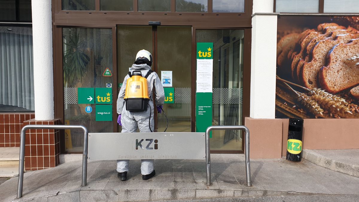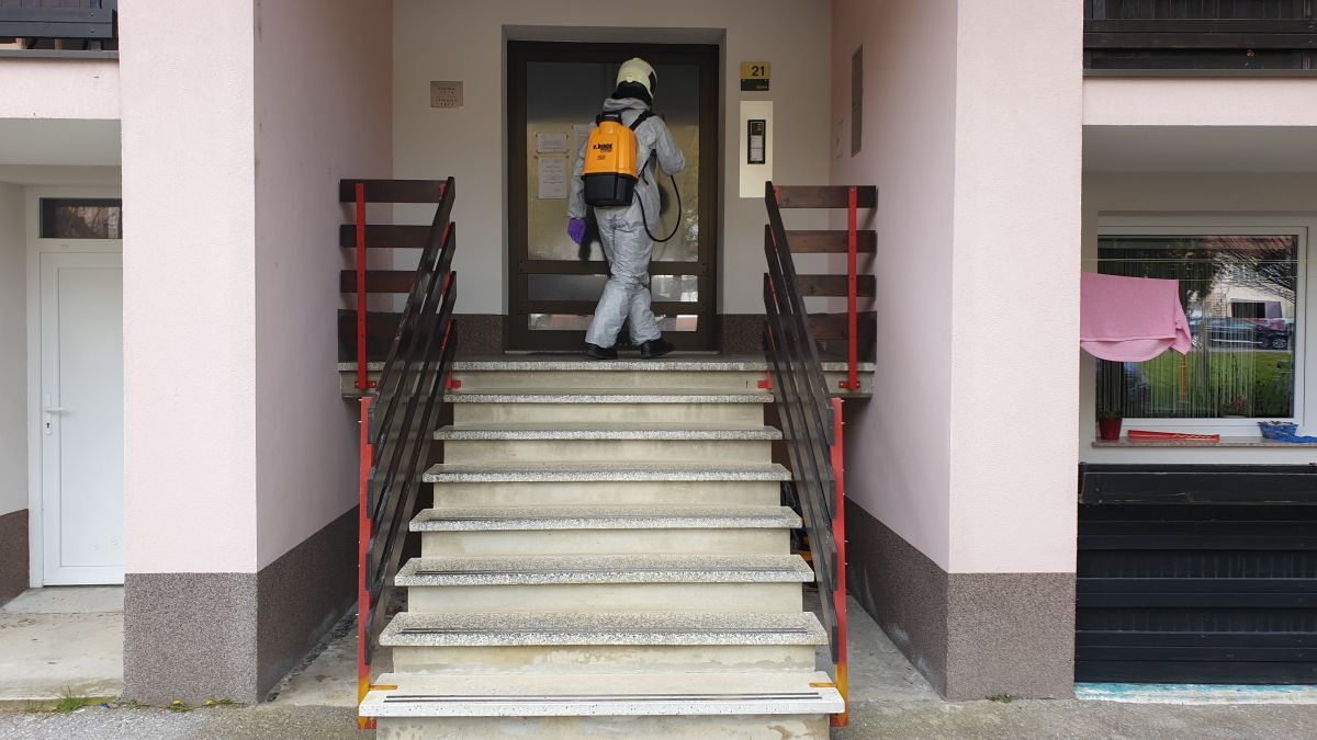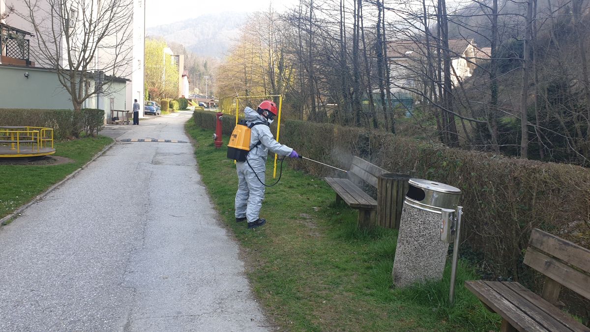 Gasilci v teh dneh, ko termometer pokaže tudi več kot 20 stopinj (kar mislim si, kako jim je vroče), pridno razkužujejo naše javne površine, vhodna vrata našega, vašega bloka, klopce v parkih, zabojnike za odpadke, vhode šol, doma starejših, vhode trgovin... „Prav tako smo danes razkuževali tudi ceste,“ nam pove gasilec Matej Lavrač.
