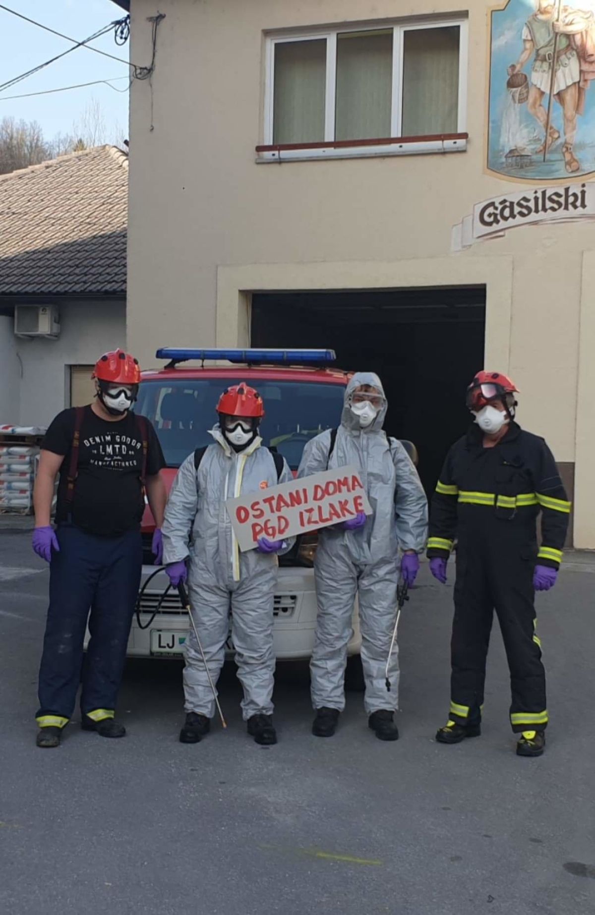 Gasilci v teh dneh, ko termometer pokaže tudi več kot 20 stopinj (kar mislim si, kako jim je vroče), pridno razkužujejo naše javne površine, vhodna vrata našega, vašega bloka, klopce v parkih, zabojnike za odpadke, vhode šol, doma starejših, vhode trgovin...