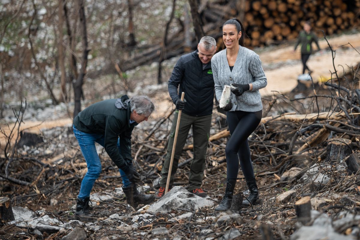 Golob in Tina Gaber sadila drevesca na požganem Krasu