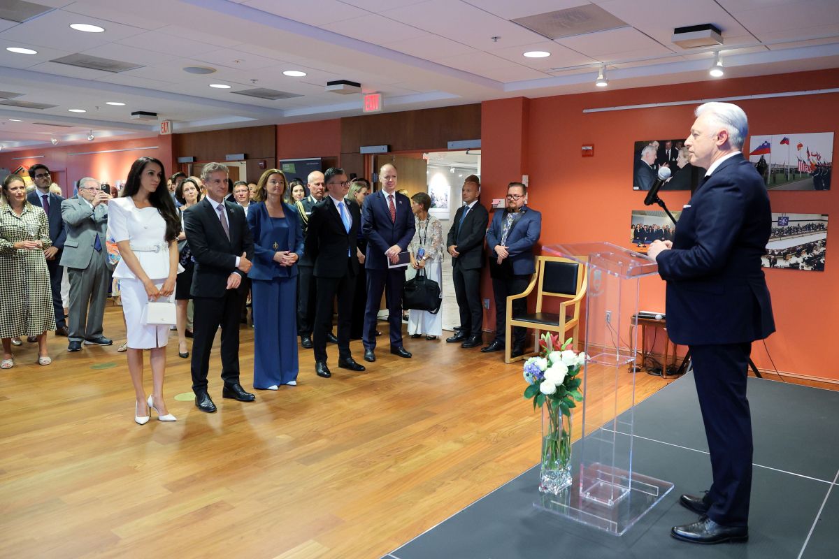 Premier dr. Golob se je v svojem pozdravnem nagovoru zahvalil veleposlaniku in vsem zaposlenim na veleposlaništvu za njihov trud in prizadevanja, s čimer prispevajo k povečanju ugleda Slovenije v Združenih državah Amerike in po svetu. Izpostavil je dolgo pot Slovenije od samostojnosti do danes, ko obeležujemo 75. obletnico zavezništva in 20. obletnico članstva Slovenije v zvezi NATO.