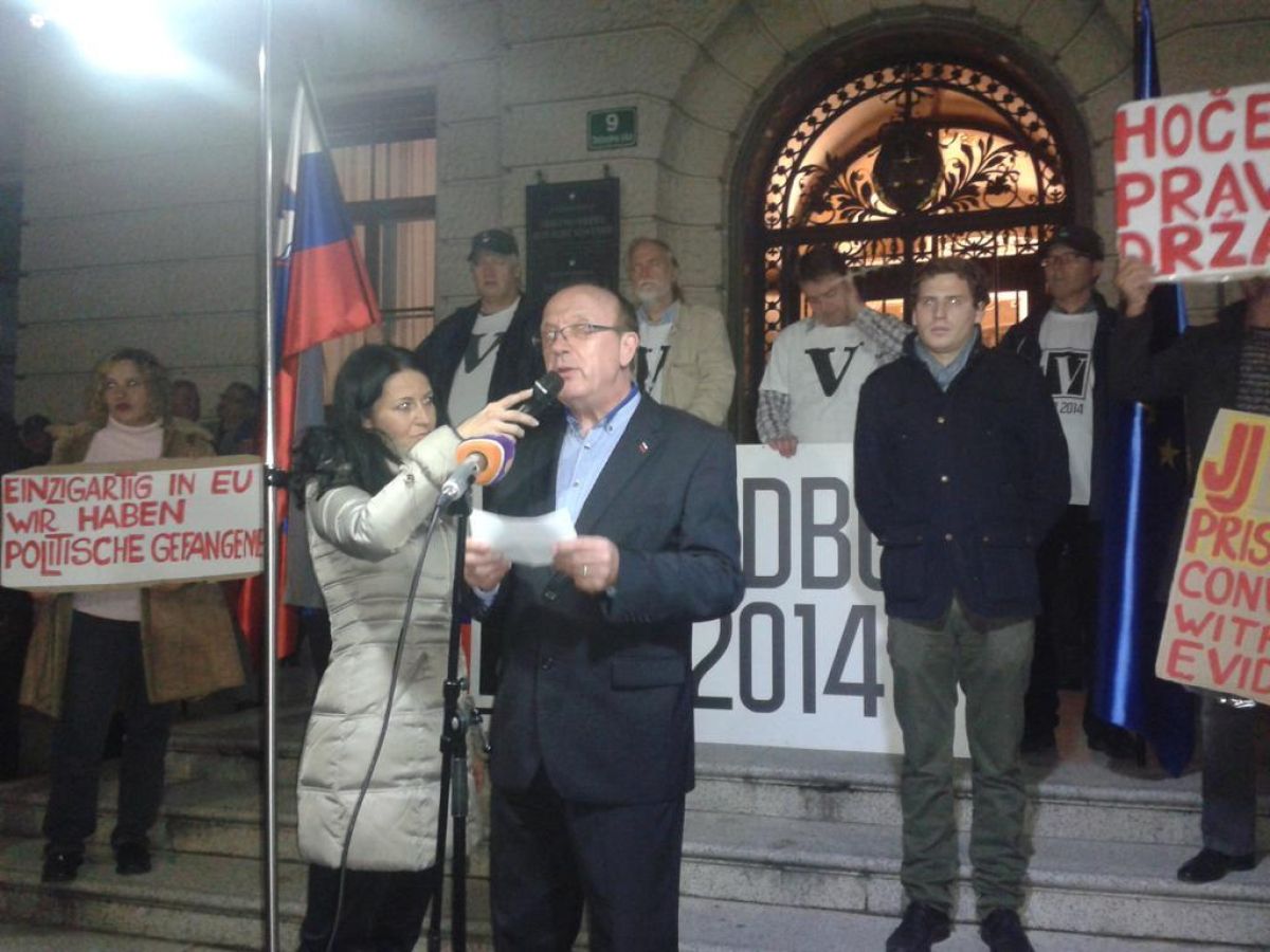 Tukaj se ne zbiramo samo zaradi Janeza Janše. Vem, da bo on svojo pravico dosegel, če ne v Sloveniji pa v Evropi. Tukaj se zbiramo tudi zaradi tisočev naših državljanov, ki so jim bile v sodnih postopkih kršenečlovekove pravice in svoboščine.