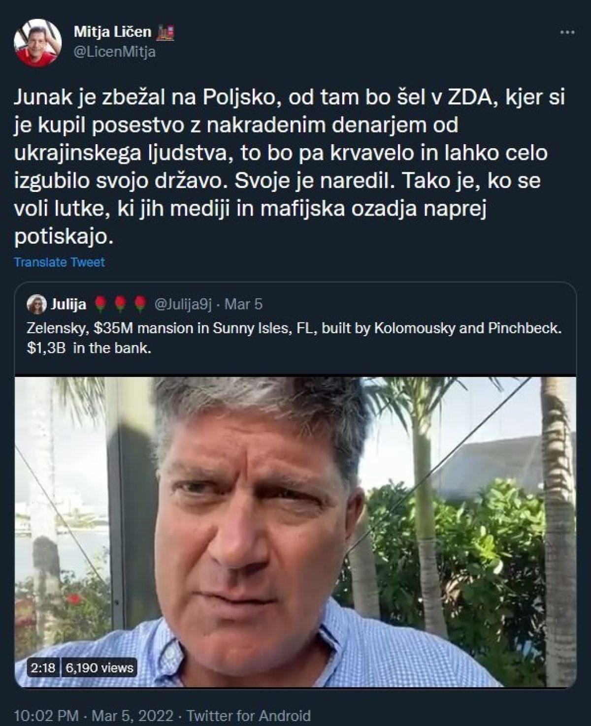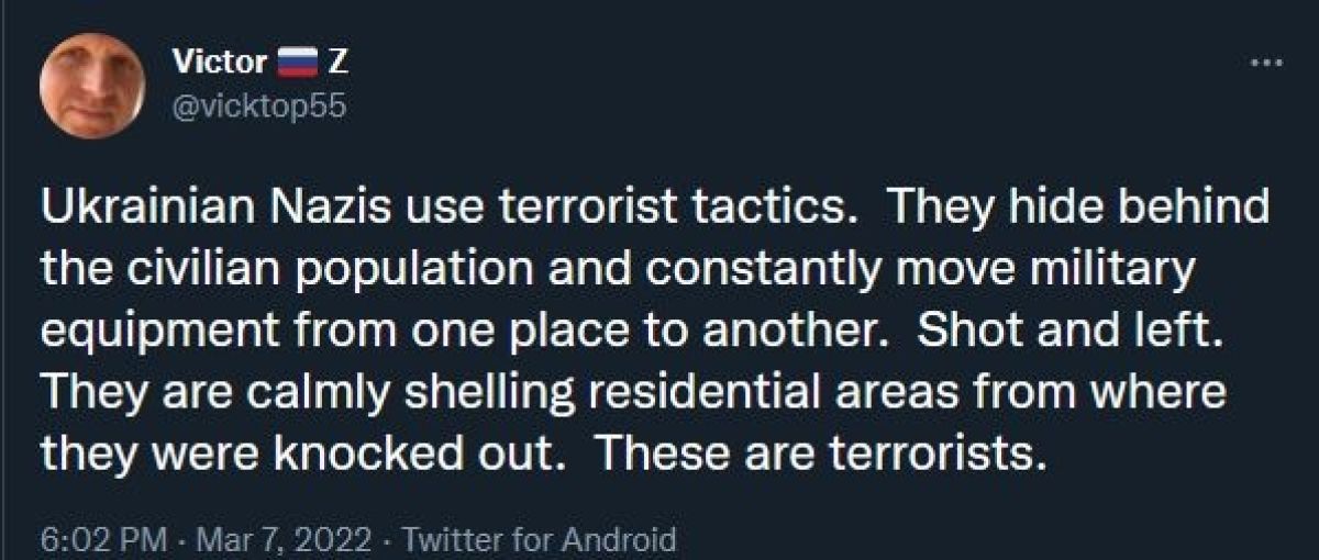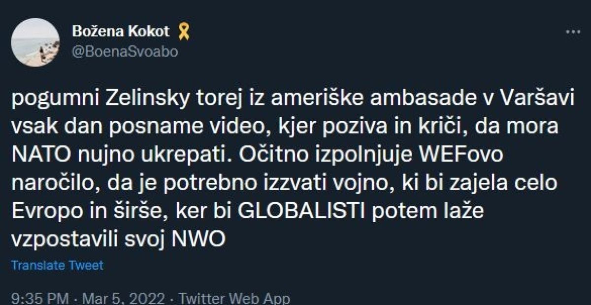 Njegova zadnja obsesija je vojna v Ukrajini. V tem ni kaj prida drugačen od številnih izstopajočih anticepilcev, ki zadnja dva tedna skoraj ne govorijo o čem drugem kot o Ukrajini in širijo lažne novice o vojni (denimo da Ukrajinci, ne pa Rusi, napadajo in ubijajo svoje ljudi, pa da Putin ni v vojni z Ukrajino temveč z zloveščimi silami, ki iz ozadja usmerjajo ukrajinsko oblast) in s tem nezavedno pomagajo ruski propagandi.