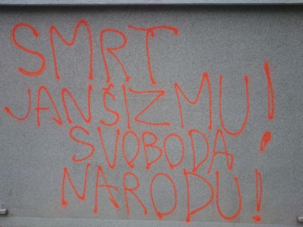Grožnja: Grafit "Smrt janšizmu! Svoboda narodu!" na sedežu SDS