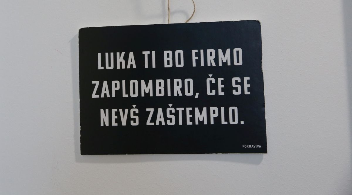 Na ministrstvu za delo v 4. nadstropju, kjer ima pisarno tudi minister Luka Mesec, zaposlene in obiskovalce ob izstopu iz dvigala pozdravlja nenavaden napis: »Luka ti bo firmo zaplombiro, če se nevš zaštemplo.«