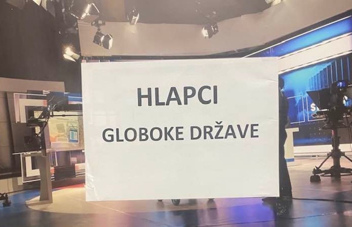 Na vratih redakcije Tarče se je v petek zvečer znašel napis "Hlapci globoke države", je na facebooku razkrila voditeljica Tarče Erika Žnidaršič.
