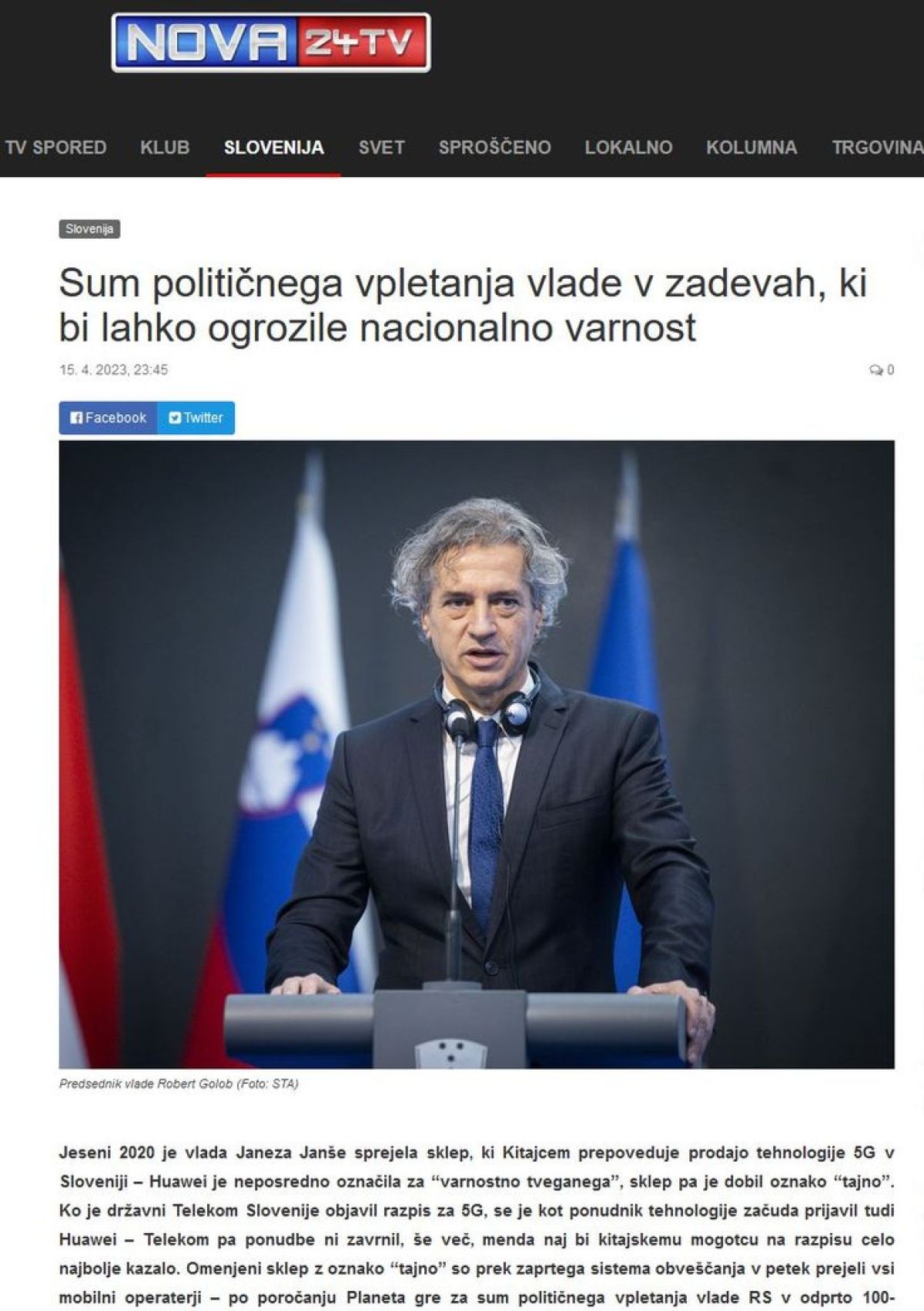 Tako Planet TV ko Nova24TV sta s svojim »poročanjem« izpostavila, da je že Janševa vlada pripravila mehanizem, ki bi Huaweiju lahko preprečil velik posel. To sicer ni bil namen Zavrla. S člankoma je želel predvsem izpostaviti domnevno zlorabo Nacionalnega centra za krizno upravljanje za vplivanje na razpis, ki gre na škodo Huaweiju – z namigom, da za vsem skupaj stojijo akterji v vladi Roberta Goloba in v stranki Gibanje Svoboda.
