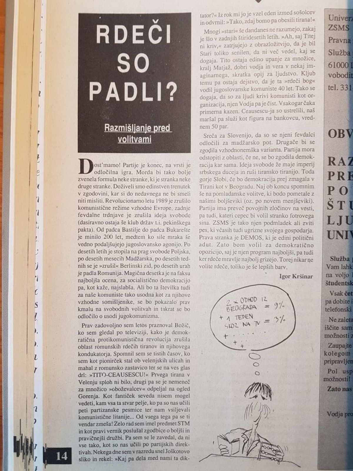 Po odhodu slovenskih komunistov s partijskega kongresa v Beogradu sem napisal komentar »Rdeči so padli«, v katerem sem napovedal zmago Demosa na prvih demokratičnih volitvah.