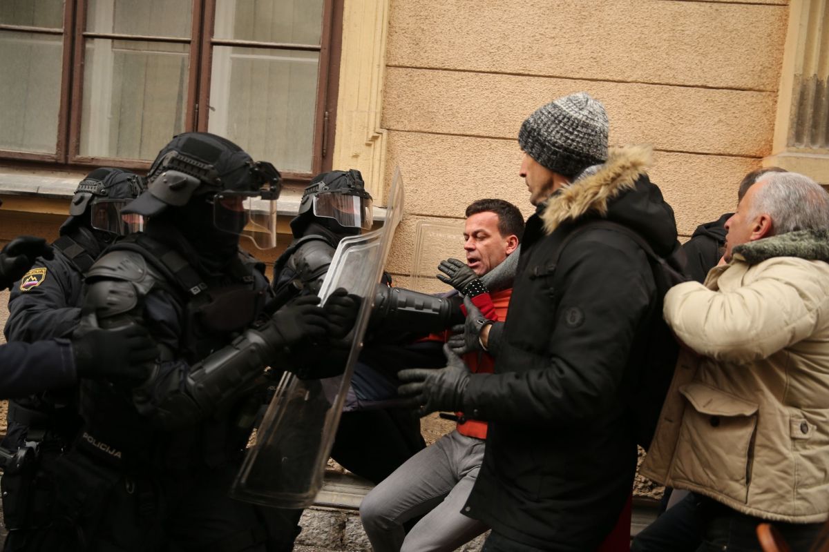Shod je sprva potekal mirno. Policisti so nato protestnike pozvali, naj zapustijo ograjeno območje Trga republike, nekateri protestniki pa pozivom niso sledili in se niso želeli umakniti z varovanega območja, zato je prišlo do prerivanja med policisti in delom protestnikov.
