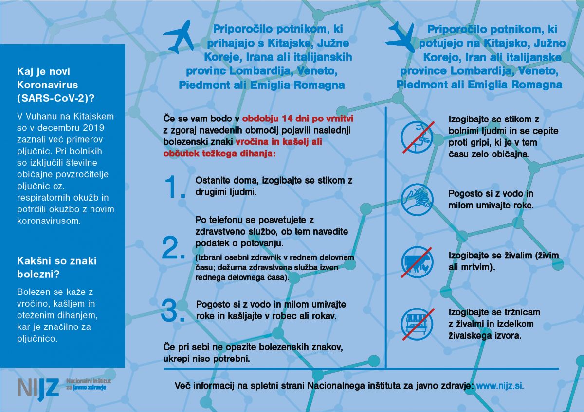Bolniki, ki so naročeni na pregled in imajo povišano temperaturo, kašelj in oteženo dihanje ali so bili v zadnjih 10 dneh v Italiji ali v krajih zunaj Evrope, kjer je potrjena epidemija koronavirusa, naj pokličejo naj na telefonsko številko 051 668 651 za nov datum za pregleda.