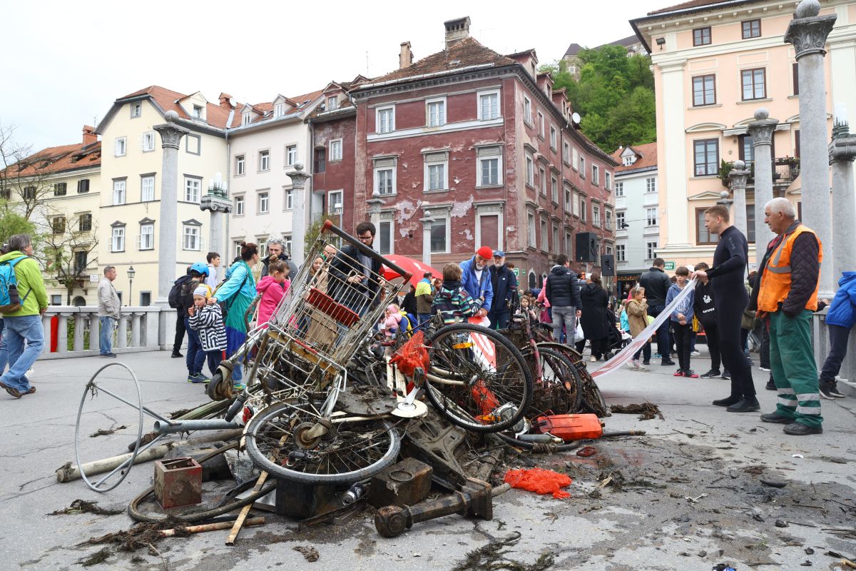 S čiščenjem Ljubljanice se je včeraj končala akcija Za lepšo Ljubljano. Potapljači so Ljubljanico očistili za približno tono odpadkov, med katerimi so se znašli tudi skuterji, kolesa, nakupovalni vozički in prometni znaki. Pred odvozom na deponijo so odpadke iz reke na ogled in v opomin razstavili na Čevljarskem mostu.