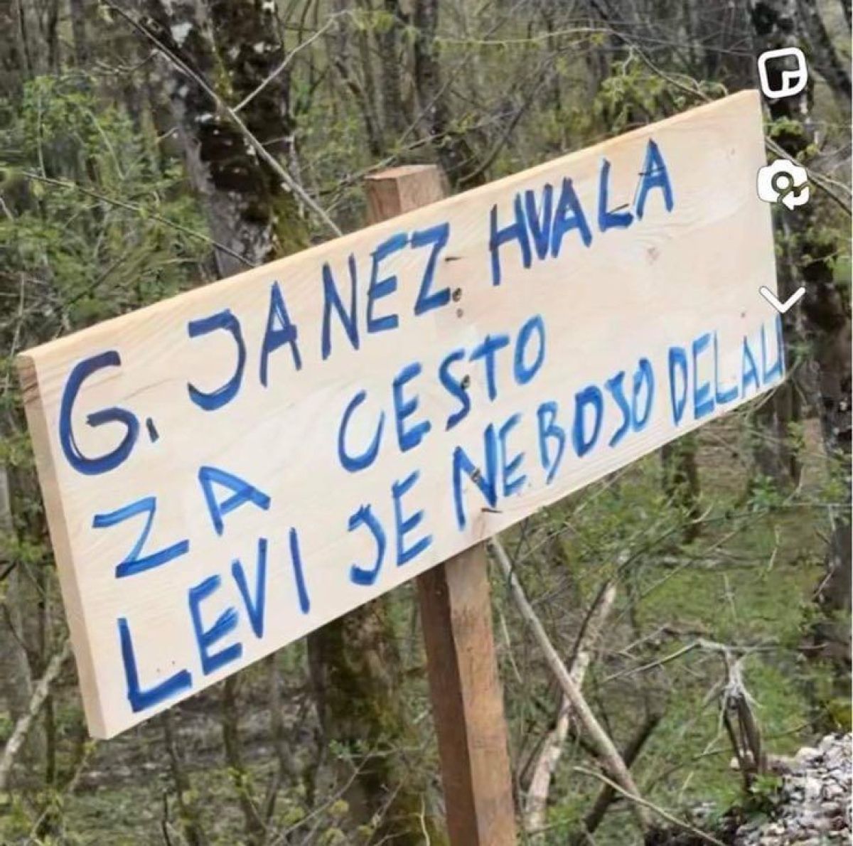 »G. Janez hvala za cesto. Levi je ne bojo delali,« piše na tabli, postavljeni v serpentini.