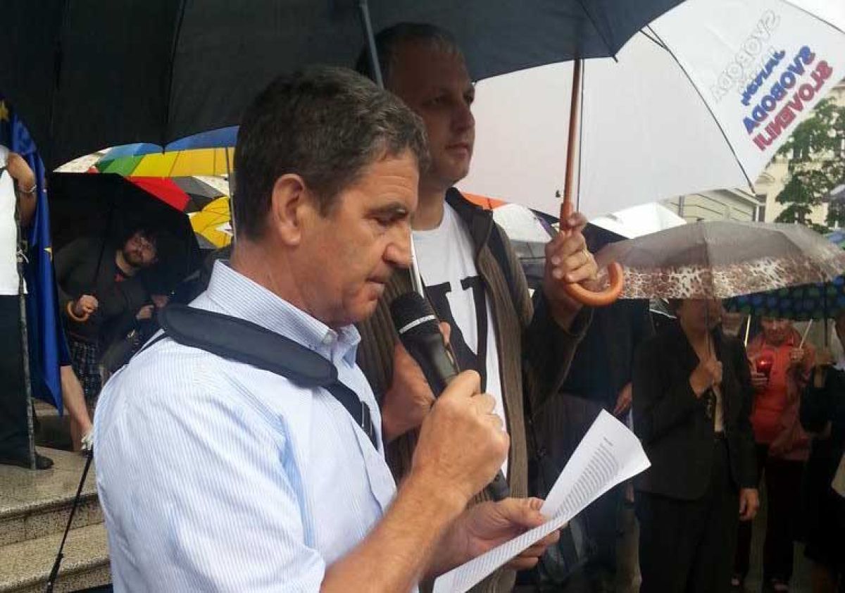 Množico protestnikov pred sodiščem je nagovoril Jože Tanko: "Žal drži izjava, da, če si proti Janši, se ti nič ne more storiti."