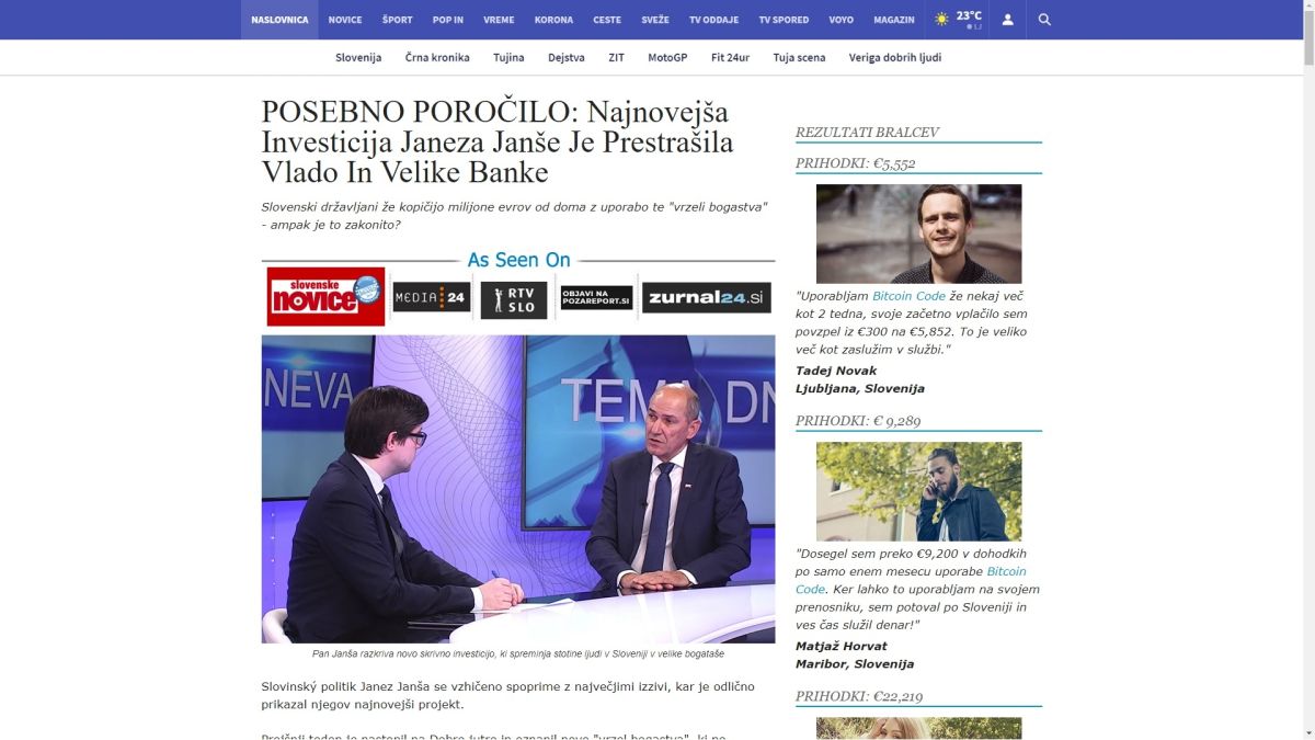 Iz kabineta predsednika vlade opozarjajo na spletno prevaro, ki kroži po družabnih omrežjih. Spletna stran z lažnimi izjavami predsednika vlade Janeza Janše uporabnike spleta namreč preusmerja na spletne strani s ponudbami različnih storitev za trgovanje s kriptovalutami. V kabinetu uporabnike pozivajo, naj tovrstnim prevaram ne nasedajo.
