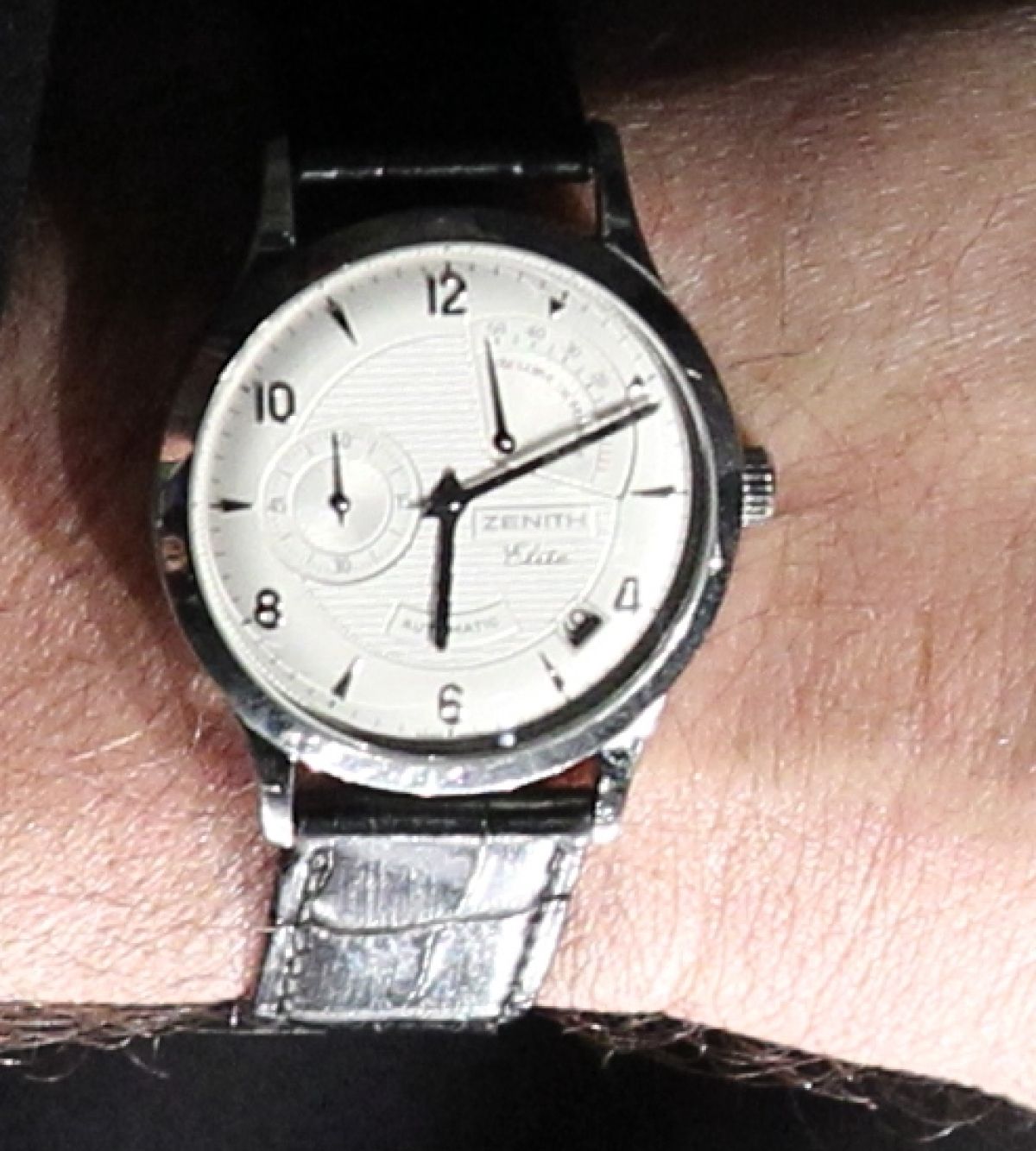 Kot smo opazili na fotografijah, prisega na švicarsko znamko Zenith. Predstavnik leve elite si je seveda omislil model Elite Class Reserve de Marche. Njeno ohišje je iz plemenitega jekla, ponaša se s safirnim steklom in reptilovim usnjem. Cena: glede na različne prodajalce od štiri do šest tisoč dolarjev.