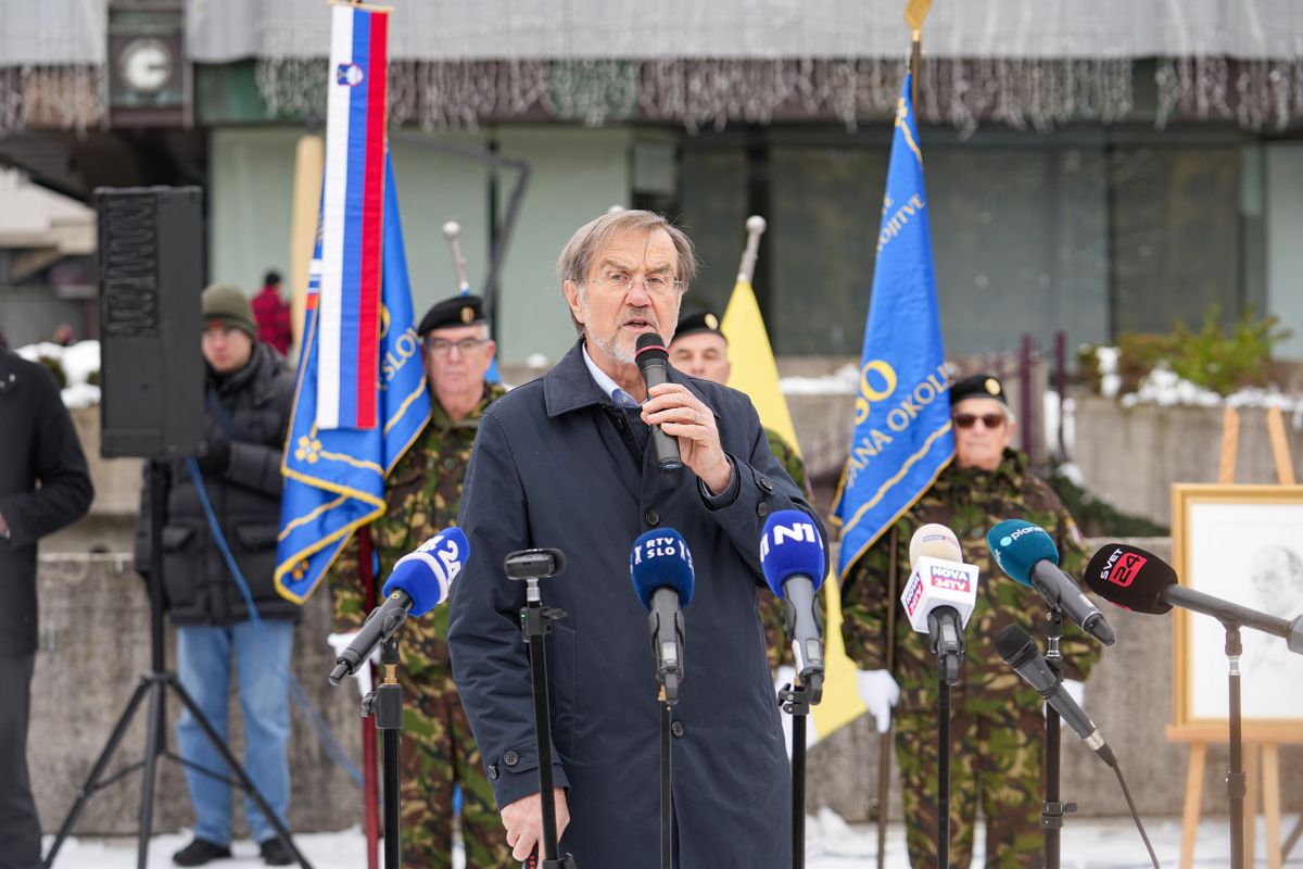 Še na shod v spomin na Jožeta Pučnika pred državni zbor ni prišel, ampak je tja kot govorca raje poslal podpredsednika SDS Aleša Hojsa in predsednika združenja VSO Lojzeta Peterleta.