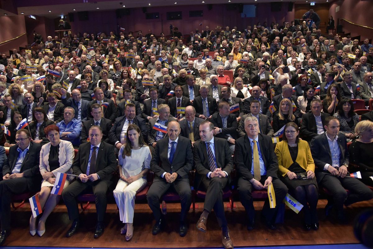 "SDS je za demokracijo in proti vsakemu totalitarizmu," je poudaril Janša. Na tej osnovi so po njegovih besedah pripravljeni vedno in povsod sodelovati v dobro in za blaginjo Slovenije z vsakomer, ki brez težav in dodatkov podpiše ta stavek.