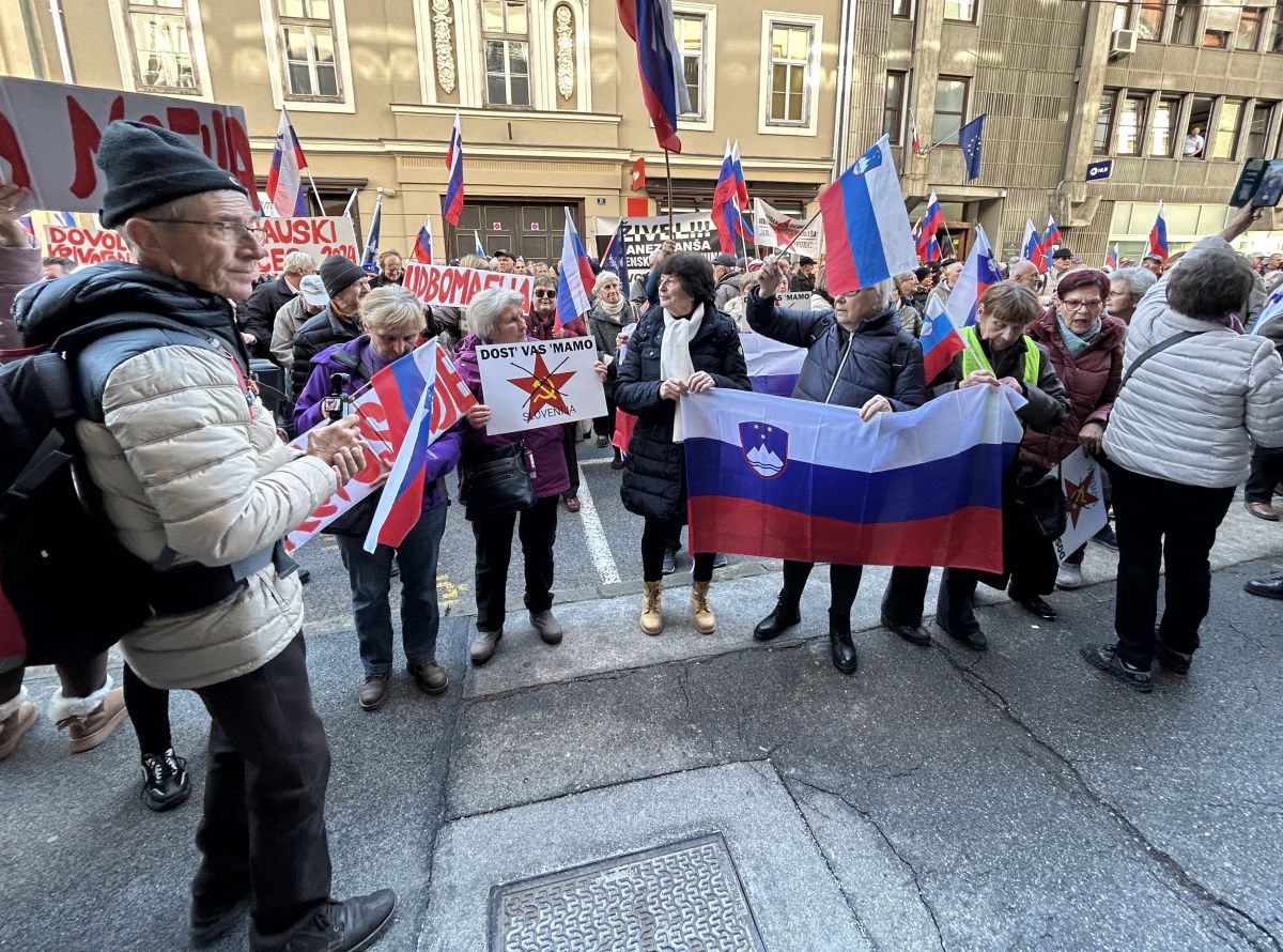 Janša v sodni dvorani, nato pred sodiščem "spontani" protest