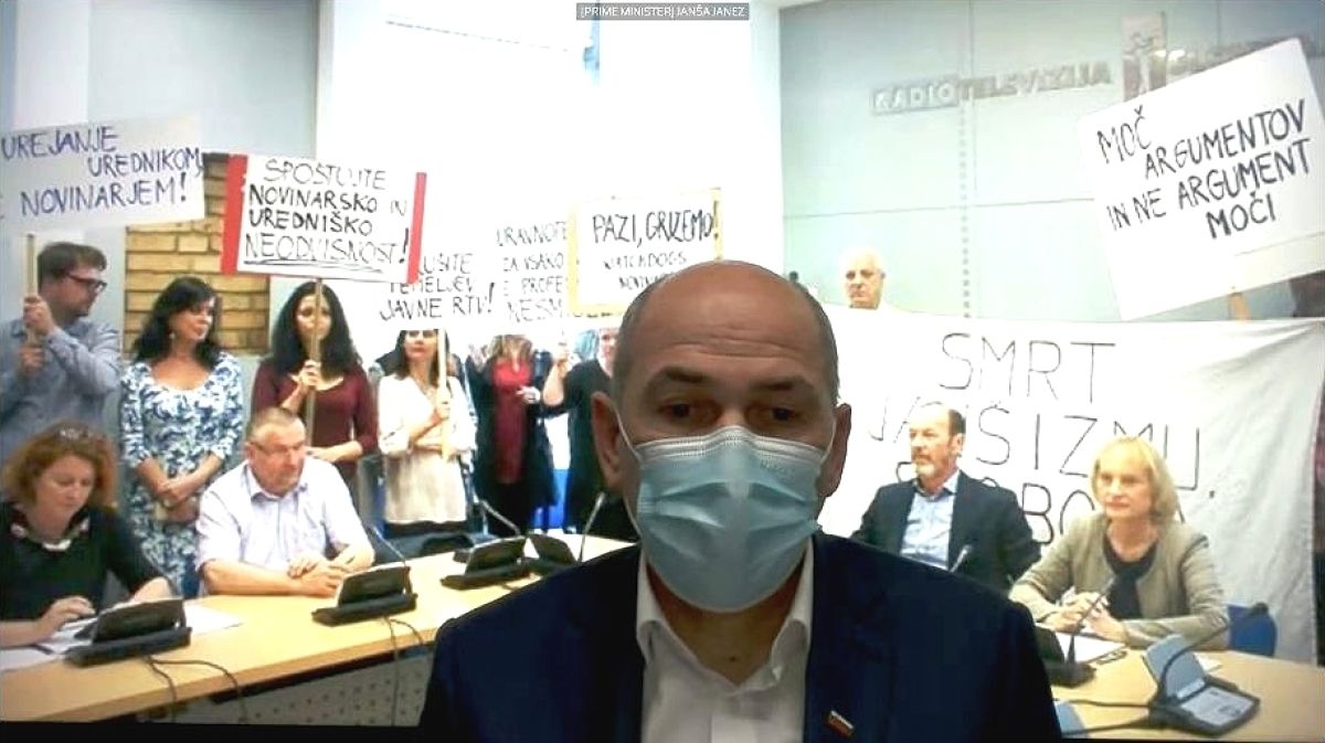 V neposredni bližini Pop TV se je pojavil grafit Janeza Janše, ki z raketometom cilja proti stavbi medijske hiše Pro Plus.