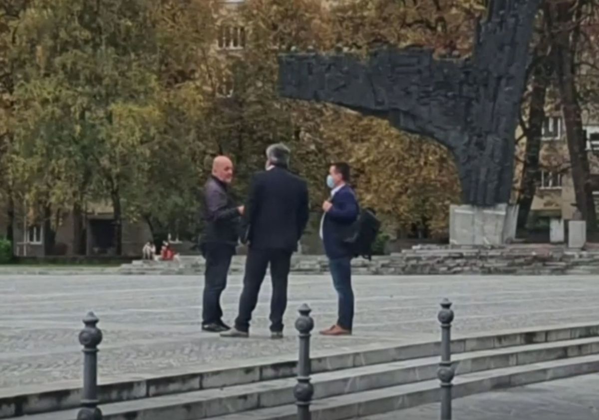 Mimoidoči so včeraj pred državnim zborom posneli prvaka SNS in poslanca Zmaga Jelinčiča, ki se je brez maske pogovarjal z dvema človekova. Posnetek je objavila TV Slovenija, a Jelinčič očitke zavrača.
