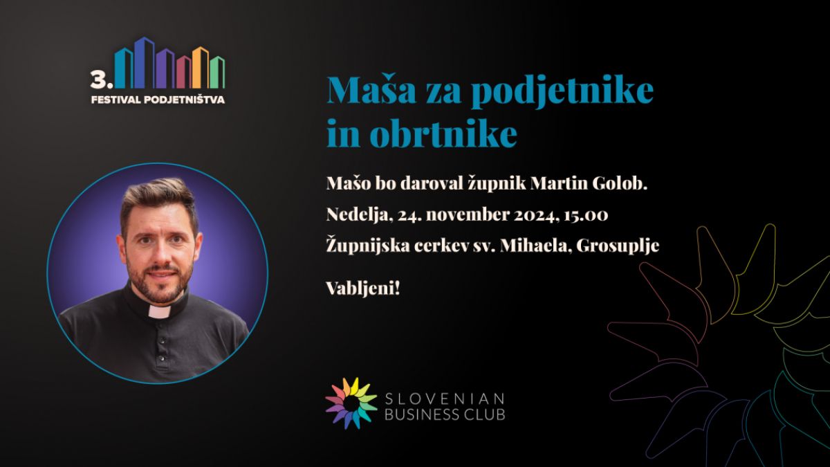 Pri najbolj znanem slovenskemu župniku Martinu Golobu iz Grosuplja so namreč naročili sveto mašo. »Dogodek bo posvečen vsem, ki v svojih podjetjih nosite odgovornost in skrb za skupnost. Gre za priložnost, da skupaj poiščemo moč, navdih in pogum za nove podvige,« piše na spletni strani Kluba slovenskih podjetnikov.