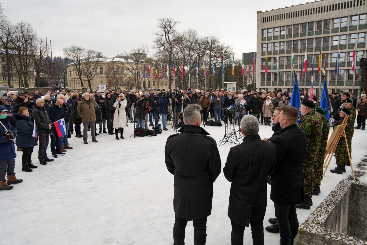 Medtem ko premier Robert Golob kosi s predstavniki strank iz levega političnega tabora, se je na Trgu republike zbrala množica v počastitev spomina na Jožeta Pučnika, ki umrl 11. januarja 2003.