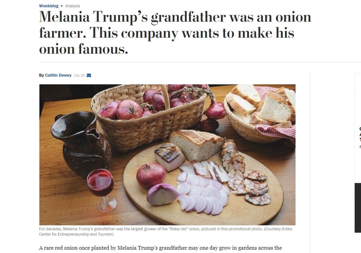 Po dani obljubi smo ji poslali več člankov, med drugim celotni članek o družini Ulčnik iz Rake, ki je s Francetom Ulčnikom, dedkom prve dame Melanie trump, zaslovela po gojenju raške č'bule. Članek v Washington Post so seveda nekoliko dodatno dopolnili z novimi informacijami, med drugim, da bo raška č'bula na željo šefa kuhinje in brez dvoma tudi na željo prve dame in njenih bližnjih, odslej na jedilniku v Beli hiši.