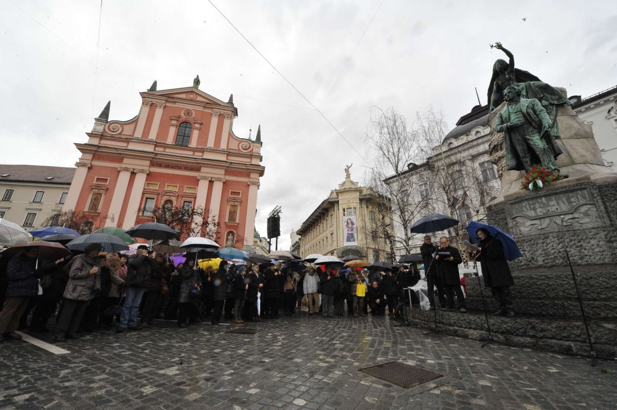 7. februarja 2016 v Cankarjevem domu nismo več videli predstave ob enotnosti slovenstva. Nismo videli praznovanja življenja največjega narodovega pesnika. Videli smo novo dražgoško bitko. Poceni, sluzast, ogaben, anarholevičarski, prozoren, politični aktivizem. Nobeden ni prišel tja zaradi Prešerna. Še več, Prešeren je bil tisto noč zlorabljen in posiljen s strani uporabnih idiotov tranzicijske levice za povsem aktualne dnevnopolitične teme. Tokrat so bili od mojstra rim bolj pomembni ljudje, ki z njim nimajo prav nič skupnega. Tisti od tam doli, v zibki nekdanje mogočne Mezopotamske kulture, kjer jih je zajela vojna in so se na povabilo Nemčije odločili, da obiščejo še nas. Tisti, za katere Združena Levica, Socialni Demokrati, Demos in uporni del Stranke Modernega Centra misli, da bodo v prihodnosti predstavljali dovolj robustno tradicionalno-revno jedro levega volilnega telesa. Tisti, ki so bili begunci še iz vojne v Bosni so vmes morda malce preveč zatavali iz smeri bratstva in enotosti.