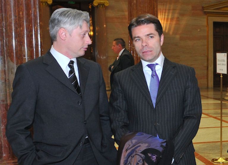 Aleksander Geržina naj bi si sprva želel v Bruselj, od koder naj bi ga leta 2003 nagnal takratni veleposlanik Ciril Štokelj - Na sliki z Iztokom Mirošičem, tekmecem za Zagreb.