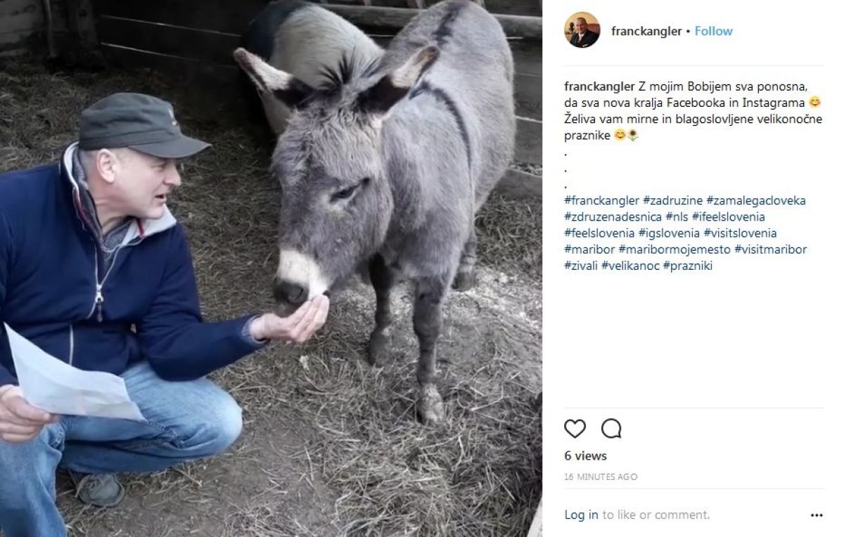 Ne Franc Kangler, osel Bobi je glavni zvezdnik Instagrama profila nekdanjega mariborskega župana. A zdaj je sodelovanja konec, kajti Kangler je na Facebooku zapisal, da Bobija prodaja.