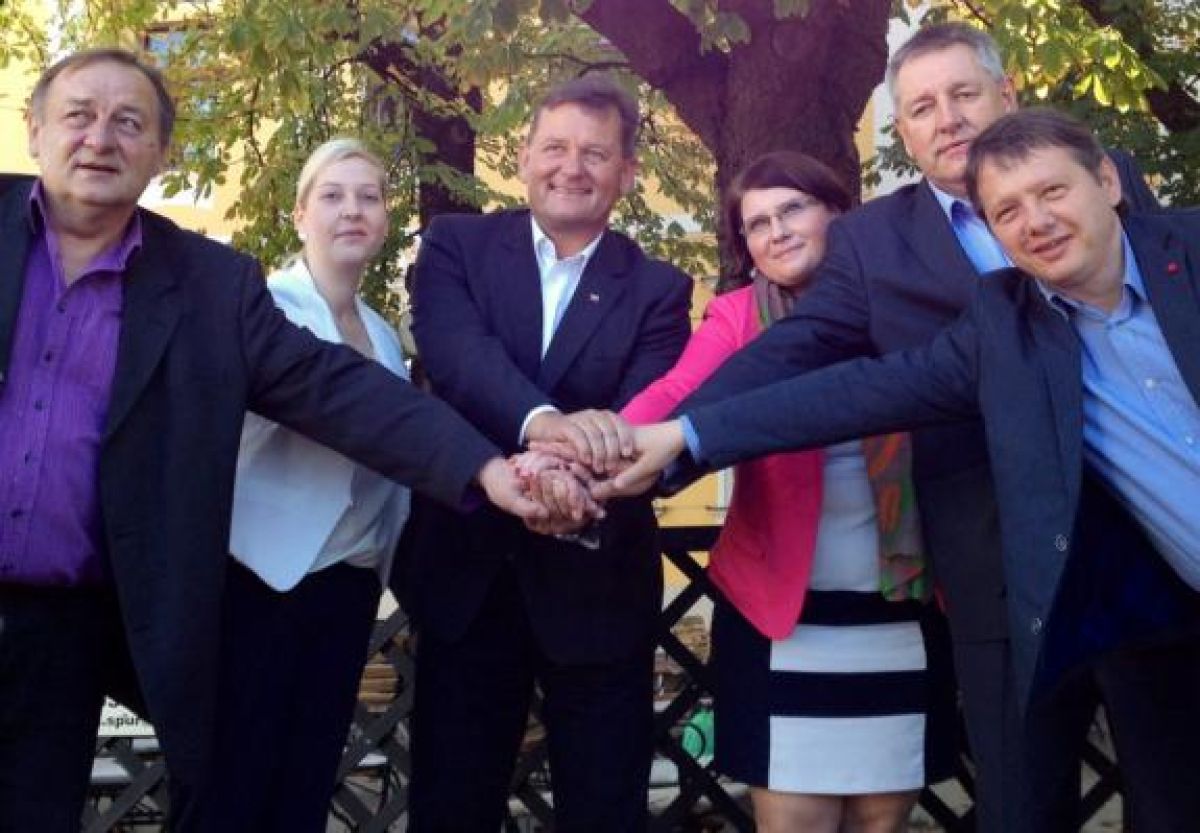 Vsi za enega, on sam pa le zase: župan Murske Sobote Aleksander Jevšek in njegovi podporniki pred drugim krogom volitev leta 2014.