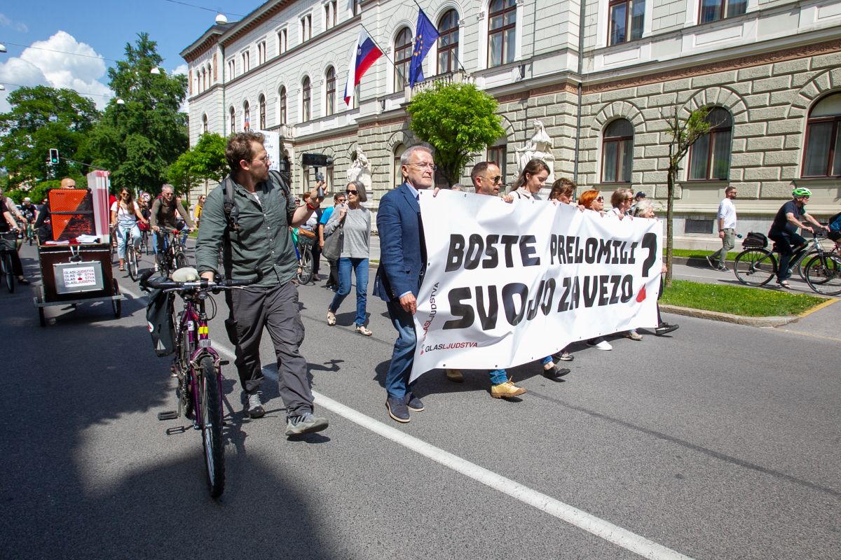 V središču Ljubljane so se včeraj znova zbrali kolesarji. Civilna iniciativa Glas ljudstva vlado ob prvem letu delovanja namreč opozarja, da je zastala pri uresničevanju nekaterih ključnih zavez. Najbolj kritični so do neukrepanja na področju zdravstva, med uresničenimi zavezami pa so izpostavili odpravo škodljivih posledic protikoronske zakonodaje.