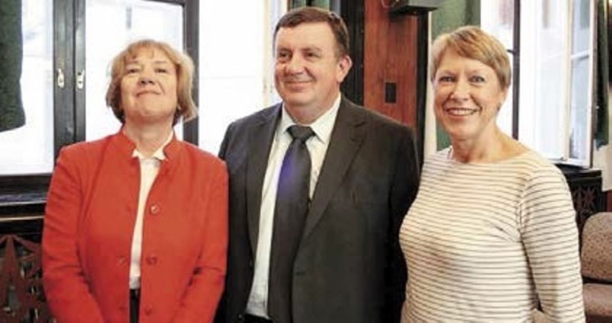 Vsi prijatelji in vsi zadovoljni, saj bo denar za vse - Od leve proti desni: namestnica predsednice upravnega odbora ZZZS Lučka Böhm, generalni direktor ZZZS Samo Fakin in predsednica upravnega odbora ZZZS Tatjana Čerin.