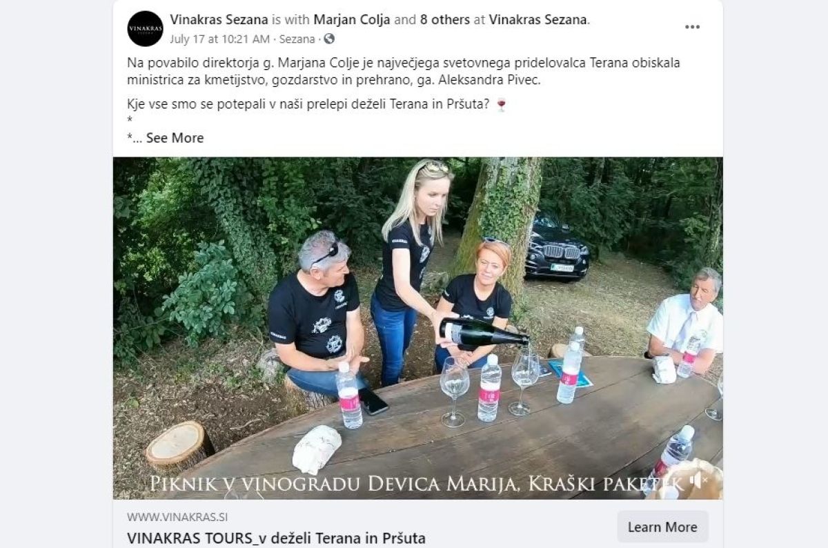 V zadrugi Vinakras so danes zavrnili vsa namigovanja o korupciji glede gostovanja ministrice. Kot so pojasnili, njen obisk nikoli ni bil načrtovan kot promocija zadruge, namen objavljenega videoposnetka, ki da ga nekateri mediji predstavljajo kot promocijski video, pa je prikaz ministričinega obiska.